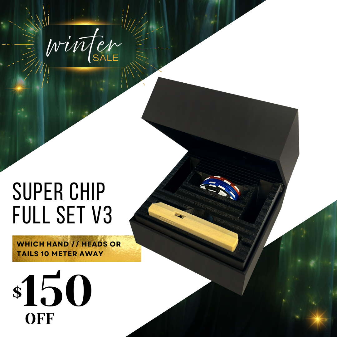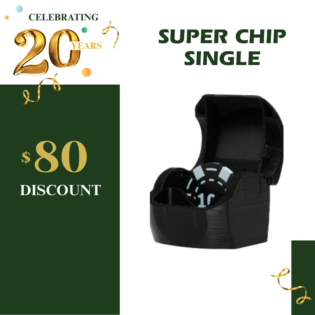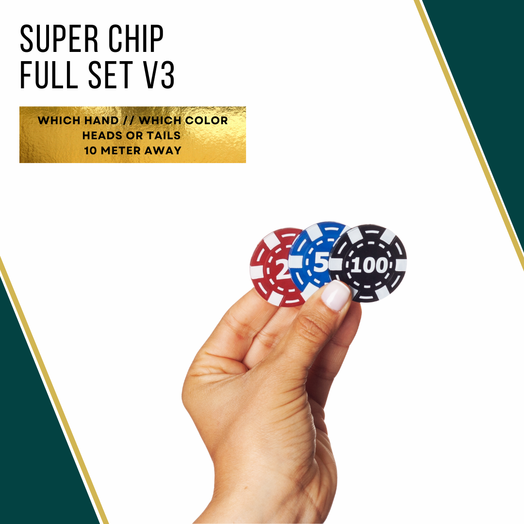 SUPER CHIP is a set of four innocent-looking smart casino chips that you can carry in your pocket. The smart micro-miniature receiver senses their status and vibrates silently to enable you to perform many different routines such as: