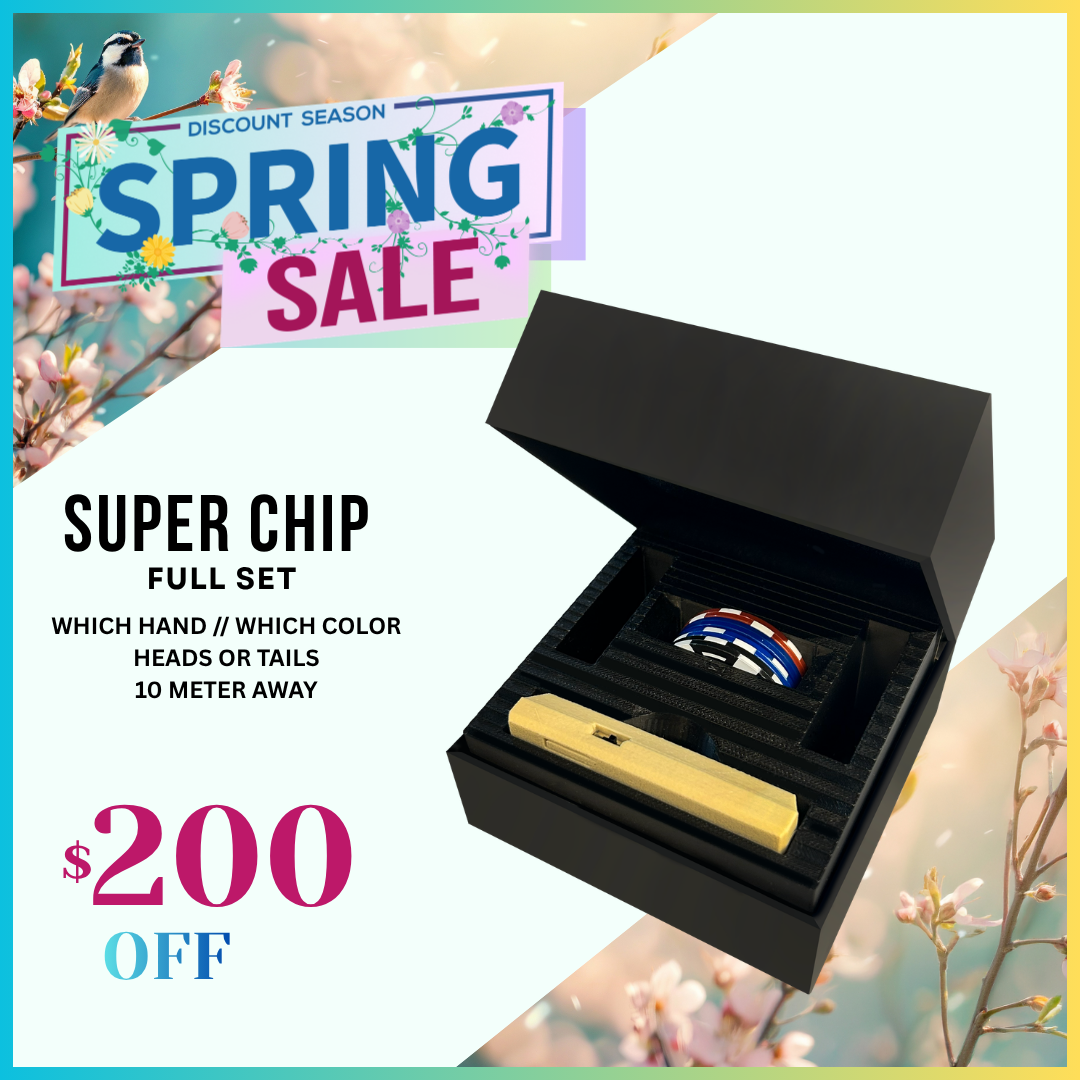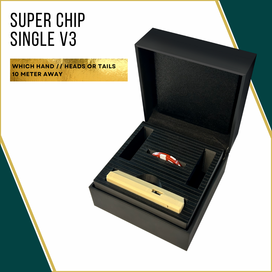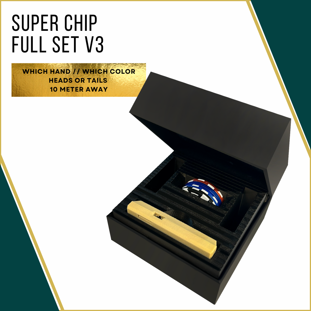 SUPER CHIP is a set of four innocent-looking smart casino chips that you can carry in your pocket. The smart micro-miniature receiver senses their status and vibrates silently to enable you to perform many different routines such as: