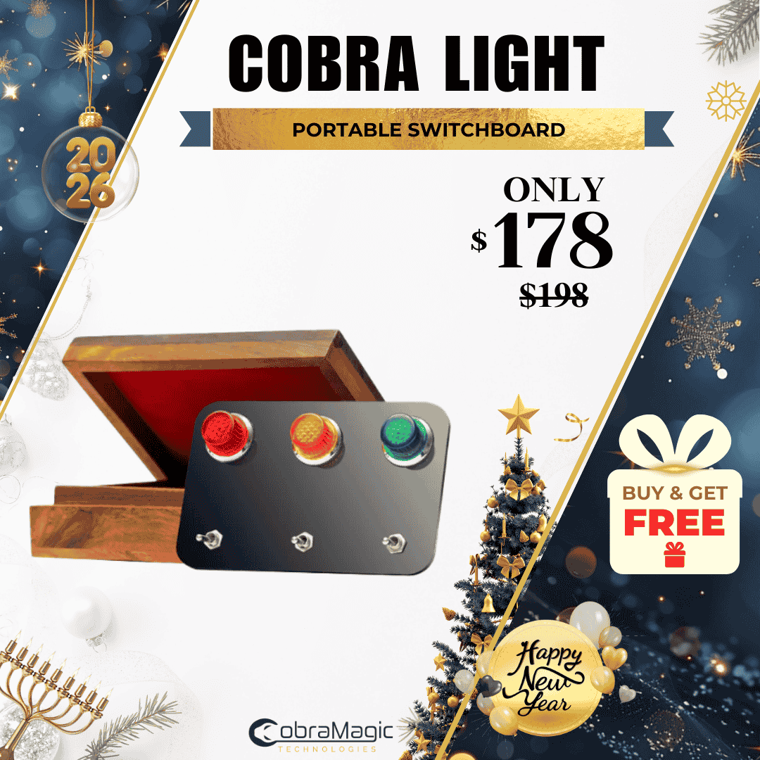 A small innocent looking device, that includes 3 electric switches and 3 colored light bulbs. Each switch is covered with a colored plastic lid that matches the light bulb it lights.
