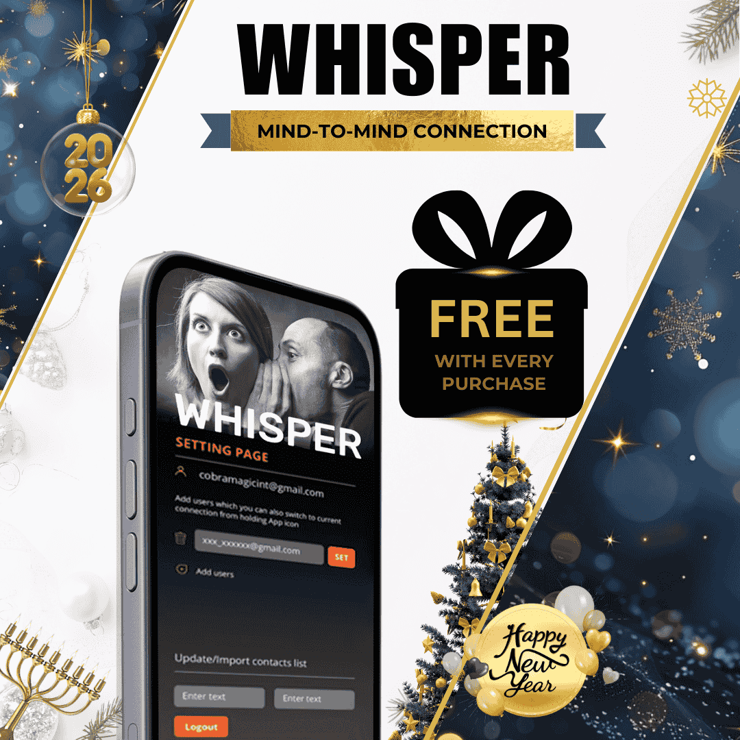 WHISPER allows you to secretly transmit thoughts and ideas to a remote assistant, without any visible action. Your spectators will be amazed that somebody in a distant location can read their minds.