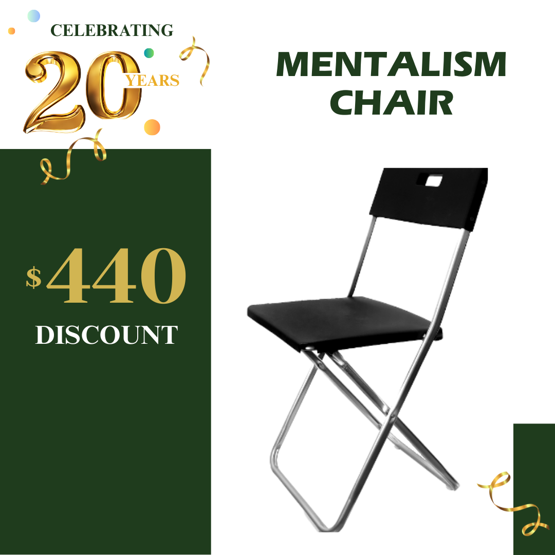Improve your mentalism acts with our trusted Mentalism Chair, favored by leading magicians all around the world. When experts rely on this tool, it shows its true value. Using the Mentalism Chair in your performances will not only leave a lasting impression, but also help you get more shows.
